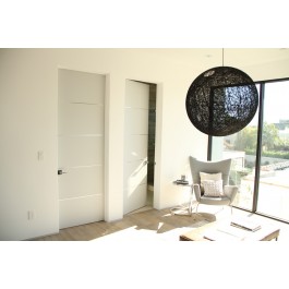 The Bentley white primed interior flush wood doors with aluminum strips are crafted from premium white primed surfaces, ensuring exceptional consistency and minimal imperfections. Our interior white primed flush doors with horizontal aluminum strips are ideally suited for residential modern doors, contemporary doors and commercial flush door openings. These meticulously crafted interior white primed doors are perfect to be used as bedroom doors, bathroom doors, closet doors, office doors, laundry doors, basement doors, dining room doors, living room doors, pantry doors, and kitchen doors. Our white primed flush interior doors can be pre-hung and can also be fire rated for an additional fee.