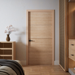 Brentwood20- Interior White Oak Flush 20 Minute Fire Rated Door- 3 Horizontal Grooves and Horizontal Grain (Engineered) (1-3/4")
