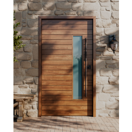 Elevate the aesthetic and security of your home or office with our Elite horizontal plank with slim vertical lite mahogany door. Constructed with a solid mahogany core, this door combines timeless elegance with exceptional durability, making it a perfect choice for entryways, front doors, back doors, patio doors, garage side doors, or any other exterior application. Ideal for residential homes and commercial properties alike, this door provides a sophisticated blend of style and functionality, making it a versatile option for a range of uses. Whether you're refreshing your front entryway or upgrading the side entrance, this mahogany door is designed to meet your needs with lasting performance.